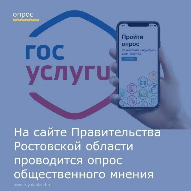 Приглашаем жителей Азовского района принять участие в опросе населения об оценке эффективности деятельности руководителей органов местного самоуправления муниципальных образований, унитарных предприятий и учреждений, акционерных обществ, осуществляющих оказание услуг населению по ссылке clck.ru/Y4UPM